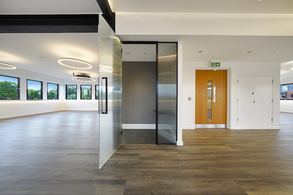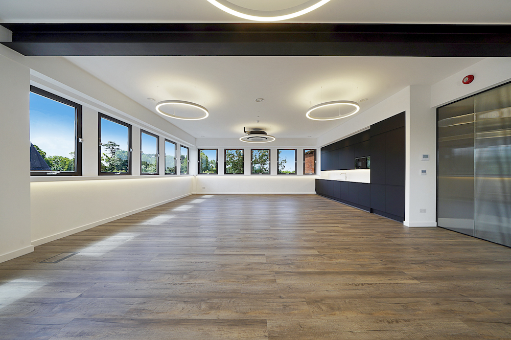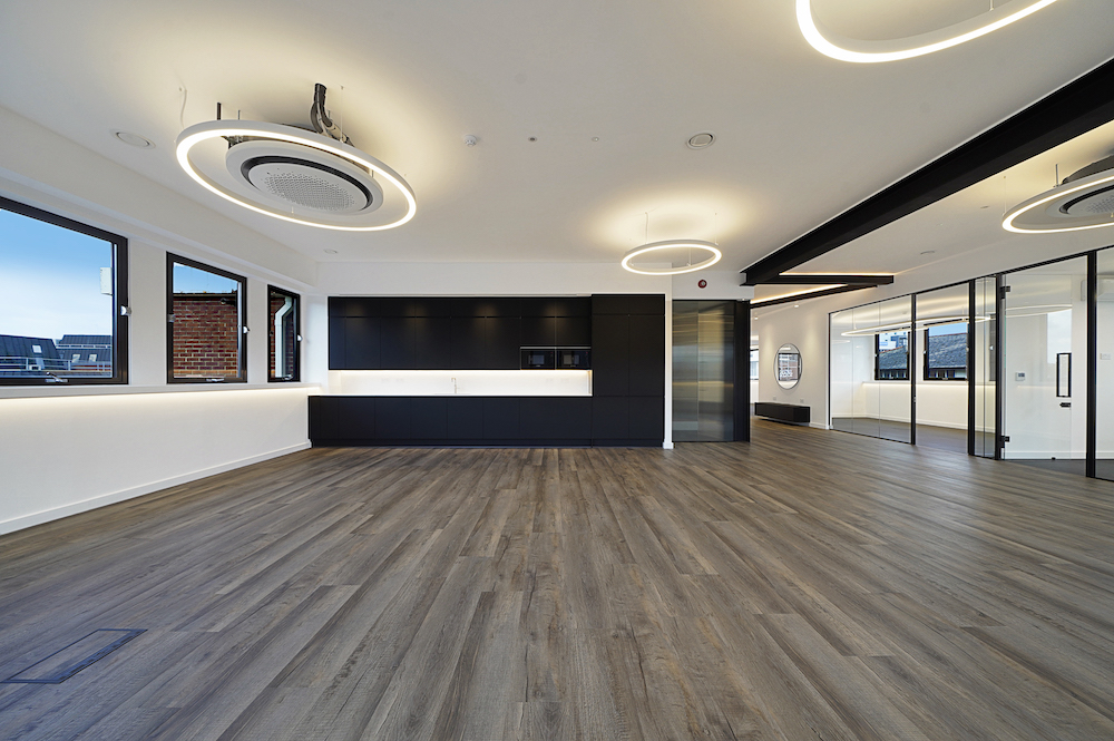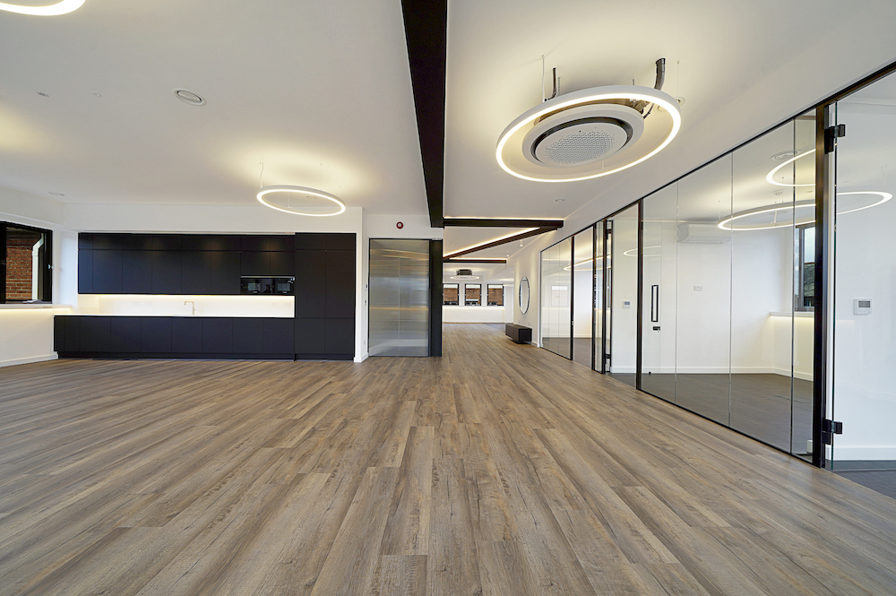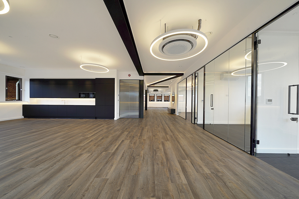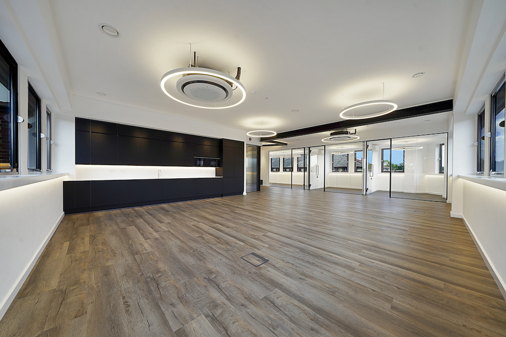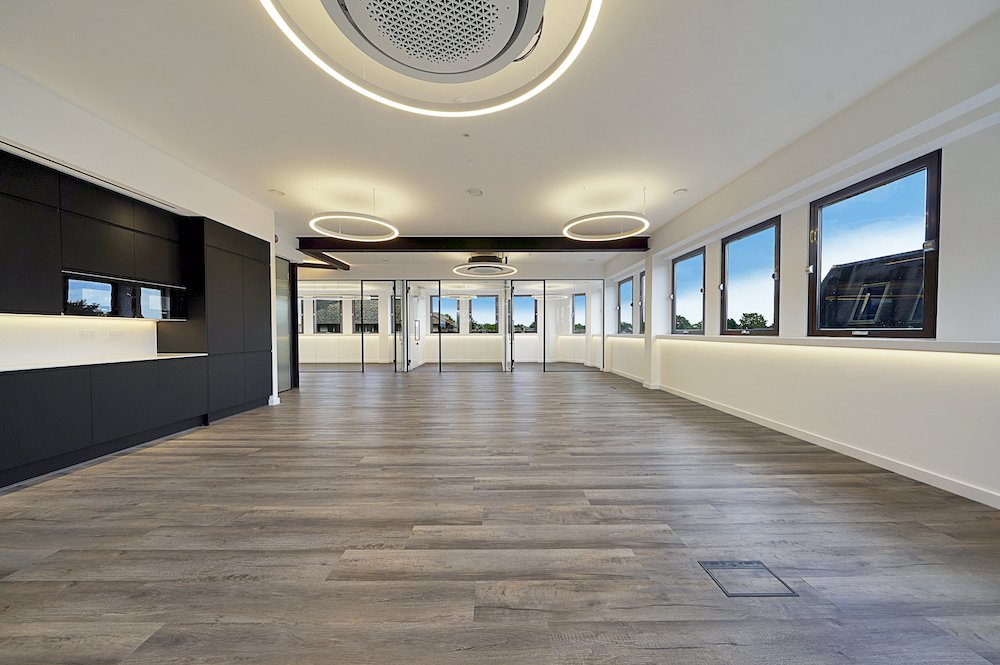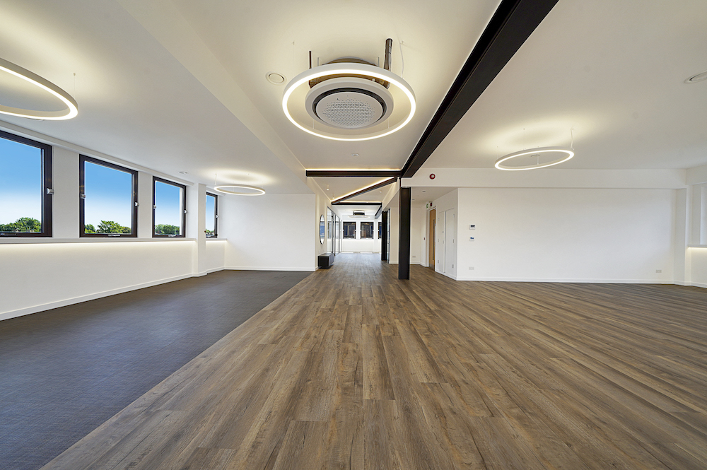 • Aesthetic Modernisation: The suite features a stylish exposed ceiling aesthetic, complemented by new Milliken loose lay flooring. This flooring is hardwearing and ideal for commercial spaces, offering exceptional durability and simplifying maintenance.