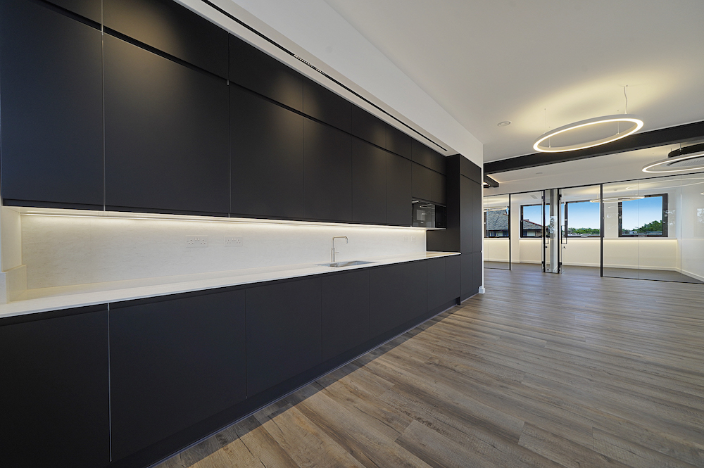 • Contemporary Amenities: A fully equipped open-plan kitchen and breakout area was integrated into the design, serving as a central hub for staff collaboration and relaxation.